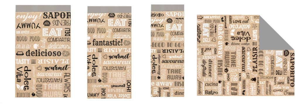 Estas bolsas para hamburguesas y sándwiches, están fabricadas con aluminio y recubiertas con papel Kraft con diseño Parole.
