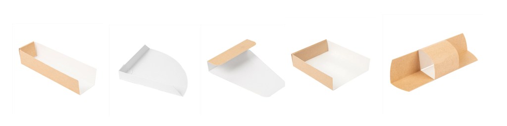 Las bandejas de cartón son una excelente solución para presentar el producto a los clientes y que estos puedan comer sin necesidad de utilizar platos ni cubiertos, siendo totalmente aptos para resistir el contacto alimentario, además de ser microondables, por lo que puede utilizarse para productos calientes como pizzas y crepes, y productos fríos como bocadillos o gofres con helado.
